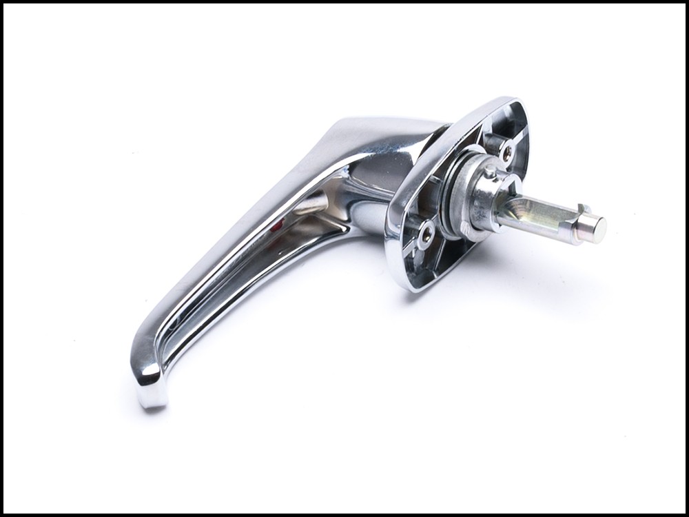 REPLACEMENT PARTS: Lockable “L”-style lever handle is made of cast metal with a polished chrome finish, for use with CHUTES’ standard trash and linen chute intake doors. This lever handle assembly complies with the ADA standards for accessible design issued by the US Department of Justice. Handle comes with 2 keys. Handle and keys only.