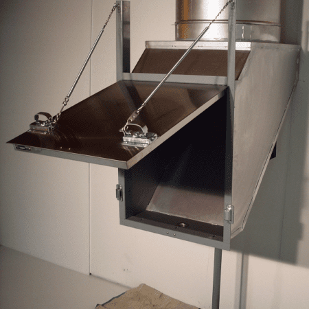 CHUTES Trash Chutes are made of aluminized or stainless steel and are available in standard sizes or can be custom designed, depending on jobsite requirements. Bottom-hinged chute doors are 100% stainless steel and offer an ADA compliant handle on the standard doors or can be purchased with motion-activated doors. There are two discharge options for the bottom of the chute: accordion discharge or rolling incline.